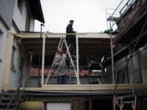 22.02.2006: Die Holzkonstruktion des Wintergartens wird montiert. |